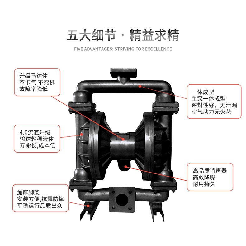 - 8、结构简单、易损件少,该泵结构简单,安装、维修方便,泵输送的介质不会接触到配气阀,联杆等运动部件,不象其他类型的泵因转子、活塞、齿轮、叶片等部件的磨损而使性能逐步下降: