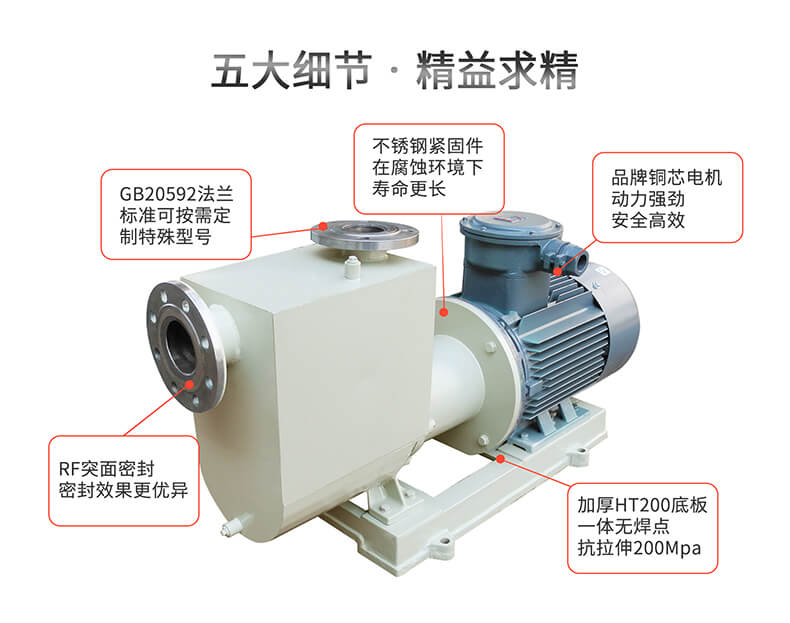 - JMCZ不锈钢自吸磁力泵高效节能、抗汽蚀性能强,适用温度范围广。具有运行稳定、噪音振动低、可靠性高、寿命长等优点,是碱液、醇类、各种有机溶剂等介质的理想输送设备。