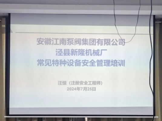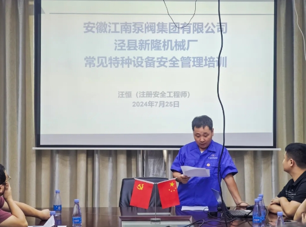 为提升公司特种设备安全管理水平,切实维护职工人身和企业财产安全,7月25日,安徽江南泵阀集团有限公司与泾县新隆机械厂联合组织开展常见特种设备安全管理培训。