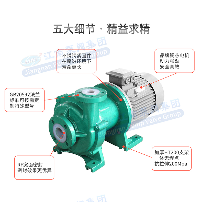 - CQB中型氟塑料磁力泵过流部件采用氟塑料及高纯度工业陶瓷制成,具有优异的耐腐性及密封性,因此本产品被广泛适用于化工、制酸、制碱、冶炼、稀土、农药、染料、医药、造纸、电镀、电解、酸洗、无线电、化成箔、科研机构、国防工业等行业。