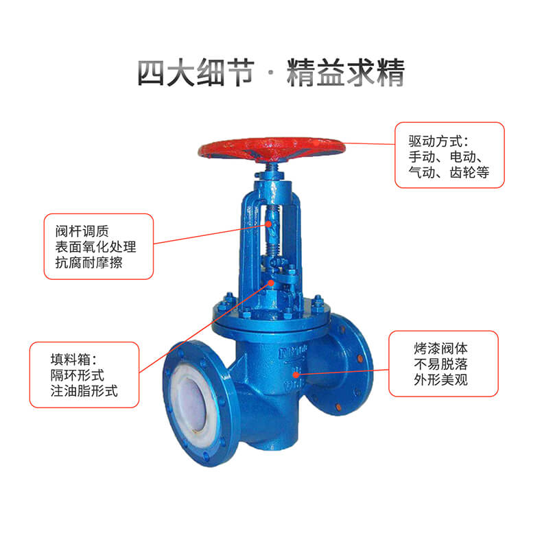 - J41F-16衬氟截止阀耐压高、可靠性强,广泛用于输送各种强腐性介质的管路上。