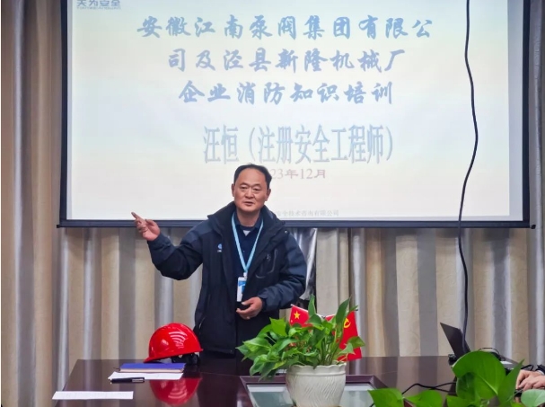 本次消防知识培训由公司运营总监戴高岩主持,是安徽江南泵阀集团有限公司2023年安全专题培训活动的一环。
